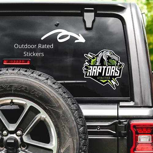 Custom Stickers are high quality vinyl. They are printed using outdoor rated print system making them scratch-proof, waterproof, UV proof (3 year guarantee), and microwave and diswasher safe.